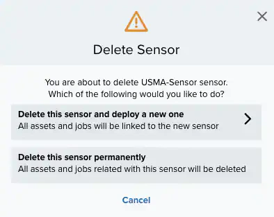 - Click Delete this sensor permanently. The deleted sensor is not displayed in the list of sensors.