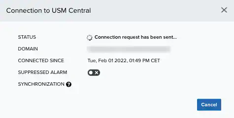 | Connection Request Sent | A connection request was initiated from the deployment and is awaiting an acceptance or denial. You can accept or decline the request in the USM Central console. |