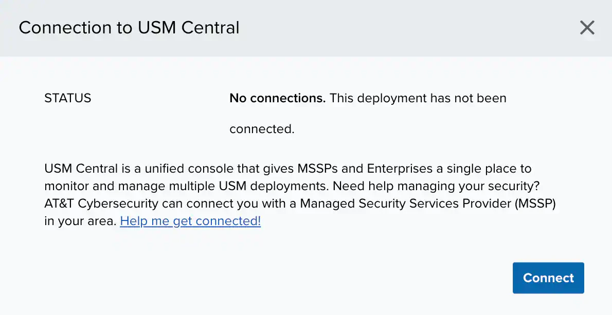 | Not Connected | The deployment is not currently connected to USM Central. |