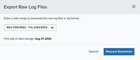 Select a date range to download the raw log files in ZIP format (dates are in UTC).