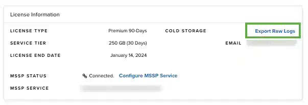 Inside License Information, click Export Raw Logs.