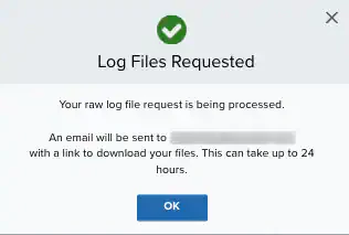 The Log Files Requested dialog box opens to inform you that your request is being processed. This process can take up to 24 hours.