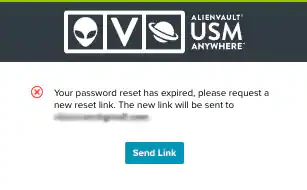 The password reset link will be valid for the next 24 hours. If you do not click the reset link within that period of time, USM Anywhere will display a message: