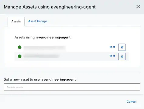 Next to the displayed asset name, click Test to execute a test connection to the asset using the credentials.