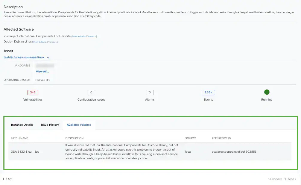 - Search for the vulnerability where you want to see the available remediation patches. See Searching Vulnerabilities for more information.