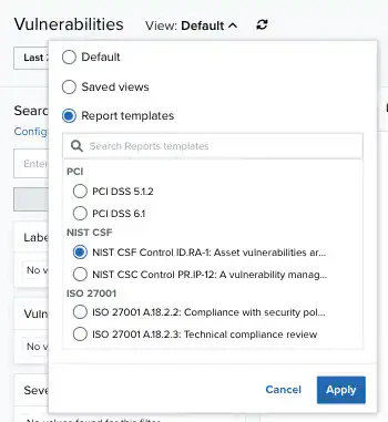 - From the Vulnerabilities list view, click View above the filters and then select Report Templates.