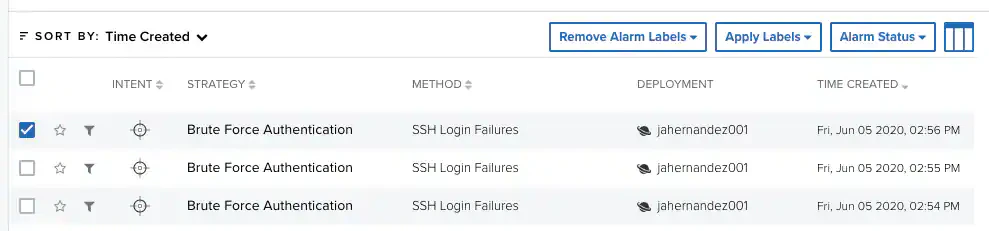 | Labels | Labels applied to the alarm. By default, it can be In Progress, False Positive, Open, and Closed. You can create and manage labels. See Labeling the Alarms for more information. |