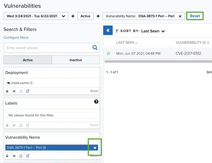 | Active/Inactive | Filter vulnerabilities by the active or inactive vulnerabilities. |