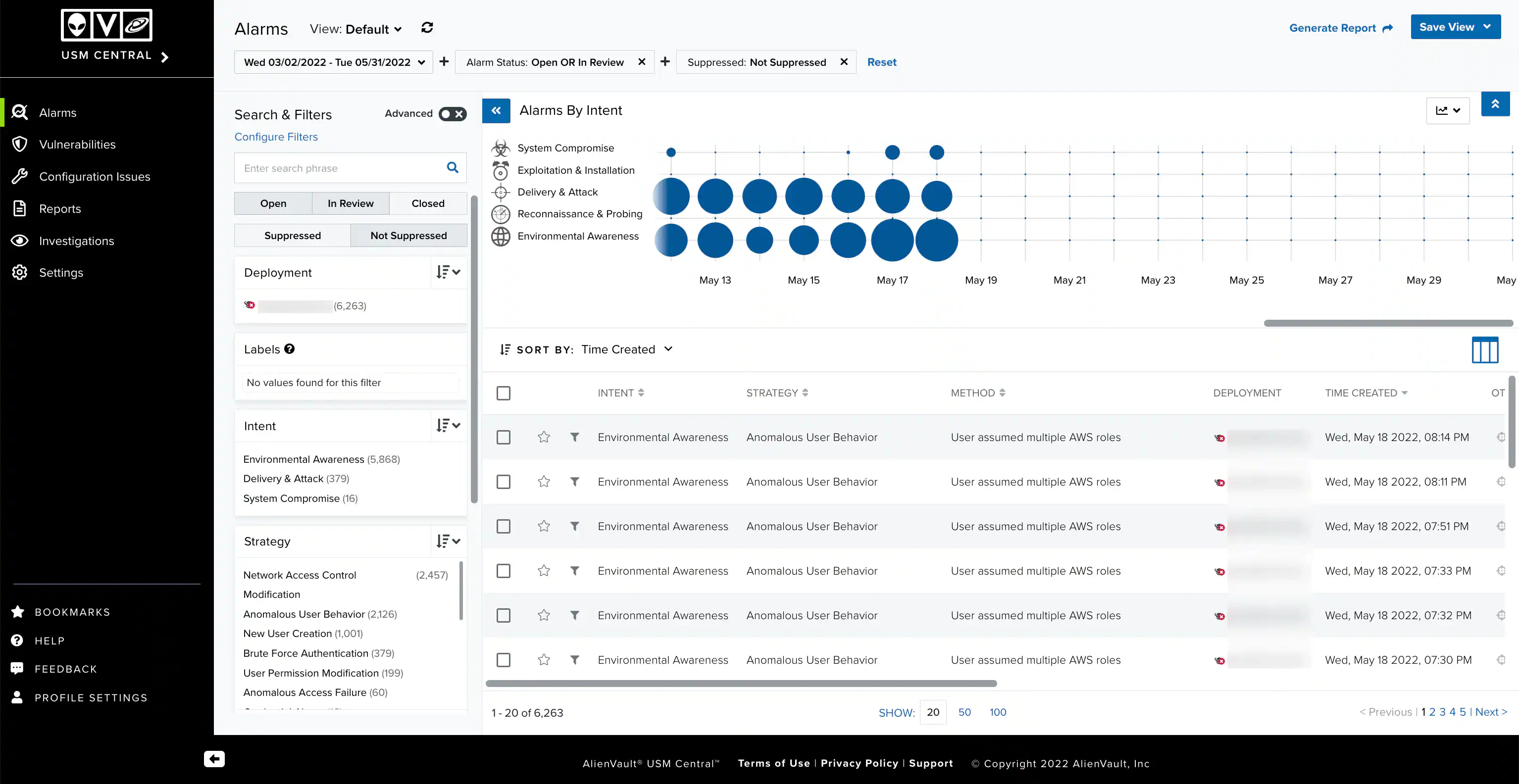 - Reports: Displays reports that result from the export data that you c an find in alarms, vulnerabilities, and configuration issues, and enables the management of the reports. You can also choose the format of the report (PDF and CSV). See Saved Reports for more information.